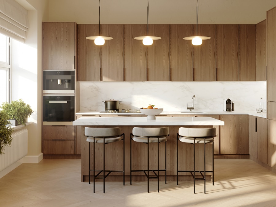 Hochwertiges Eichenparkett, stilvolle Fliesen und Badarmaturen sowie die ausgezeichneten Holzboden auf der Terrasse. Die einzigartige Qualität sowie der Still macht den erstklassigen Charm des Projektes aus.