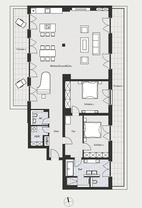 Le revêtement au sol est en parquet de chêne avec chauffage au sol intégré. Les salles de bains sont équipées de douches et de baignoires avec matériaux haut de gamme. Le jardin paysager, avec de spacieuses loggias, terrasses et balcons, offre une expérience de vie unique en plein cœur de Berlin !